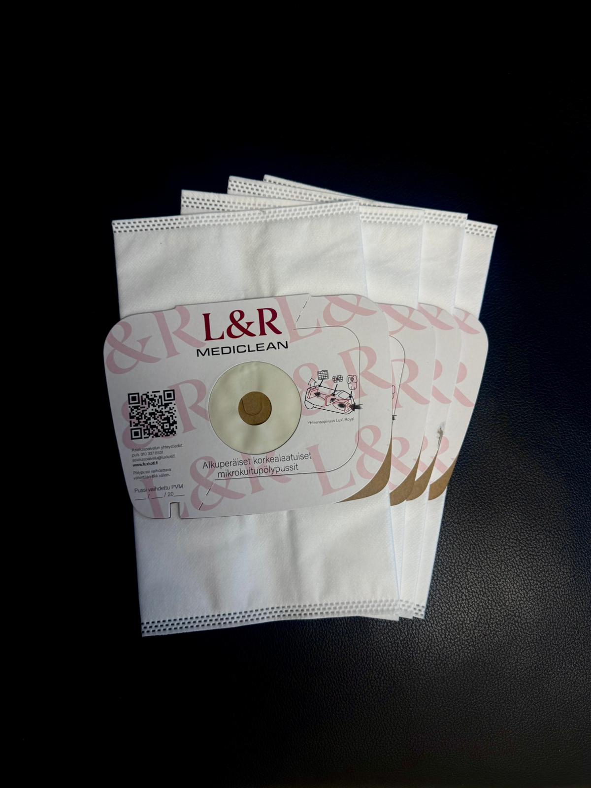 Lux1 imurimalliin sopivat pölypussit, 4 kappaletta paketissa. Synteettinen pölypussi suodattaa isoimmat hiukkaset.